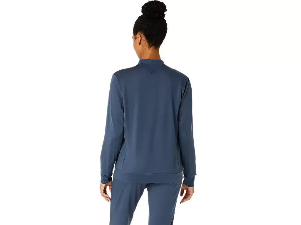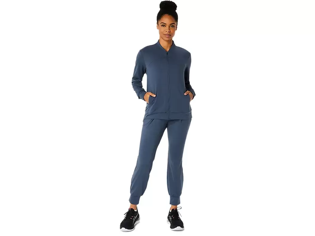 Diese Jacke besteht aus einem weichen, dehnbaren Strickstoff, der sich für verschiedene Aktivitäten eignet.