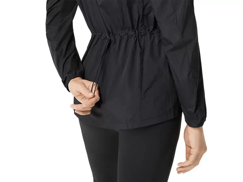 An der Kapuze befindet sich außerdem ein Kordelzug zur Saumverstellung, der dafür sorgt, dass sie während der Bewegung nicht verrutscht.