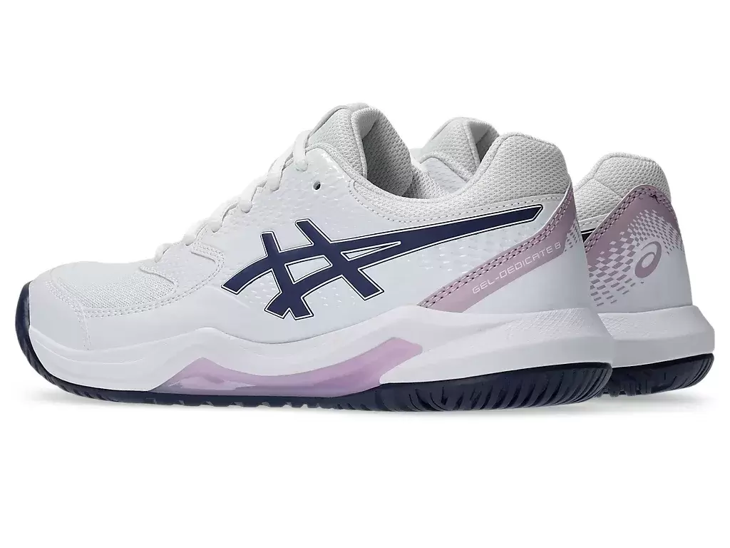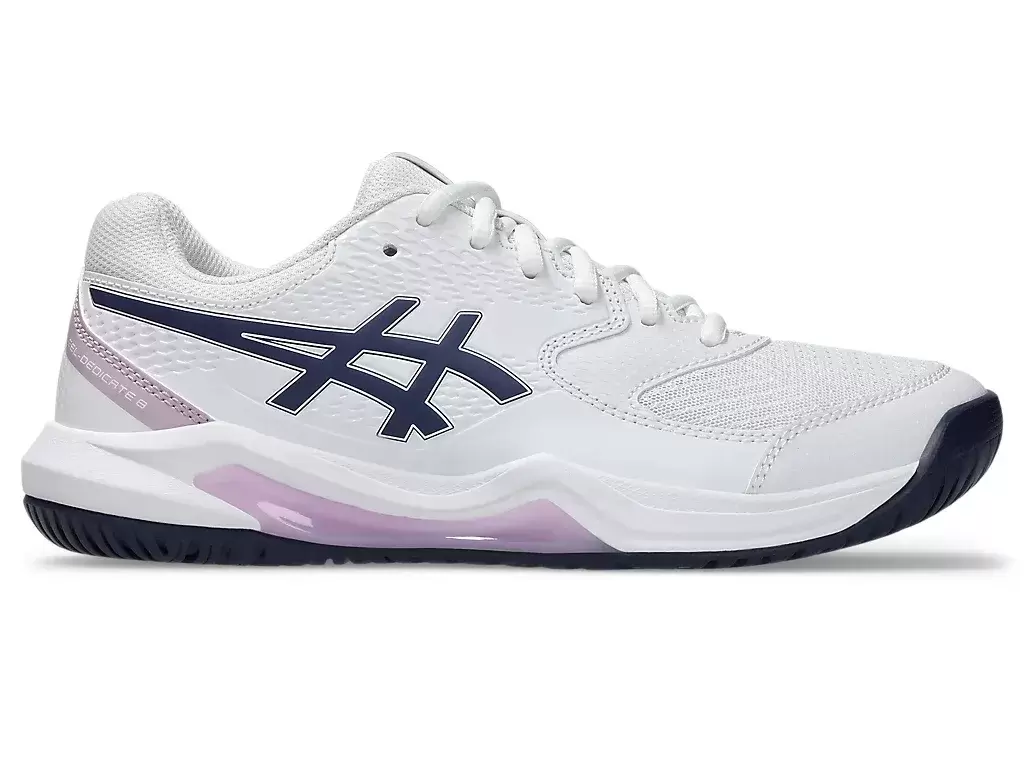 Der GEL-DEDICATE® 8 (Wide) Tennisschuh bietet gute Stabilität und ein flexibles Tragegefühl, damit Sie sich während des Spiels konzentrieren können.