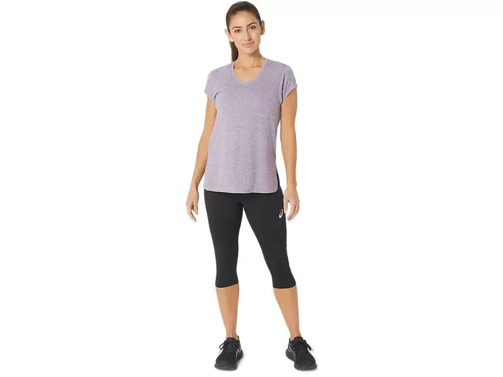 Dieses kurzärmlige Top mit V-Ausschnitt liegt angenehm auf der Haut. Es besteht aus einem bequemen Strickstoff mit nach vorne verlegten Seitennähten für mehr Bewegungsfreiheit.