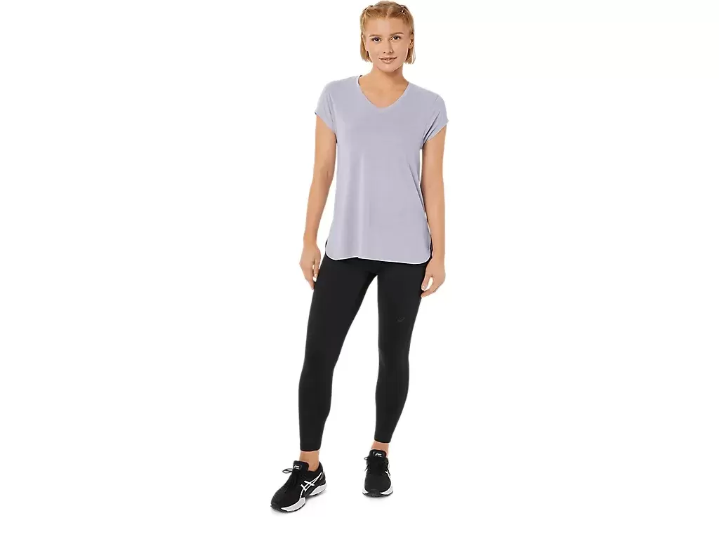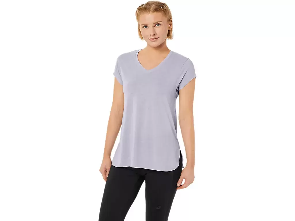 Dieses kurzärmlige Top mit V-Ausschnitt liegt angenehm auf der Haut. Es besteht aus einem bequemen Strickstoff mit nach vorne verlegten Seitennähten für mehr Bewegungsfreiheit.