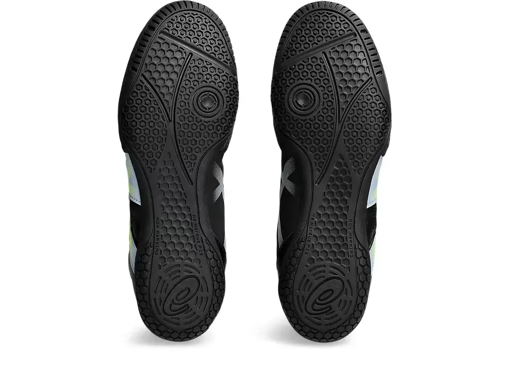 Der Schuh verbessert nicht nur die Traktion auf Mattenoberflächen, sondern verfügt auch über Flexionskerben in der Außensohle für mehr Flexibilität.