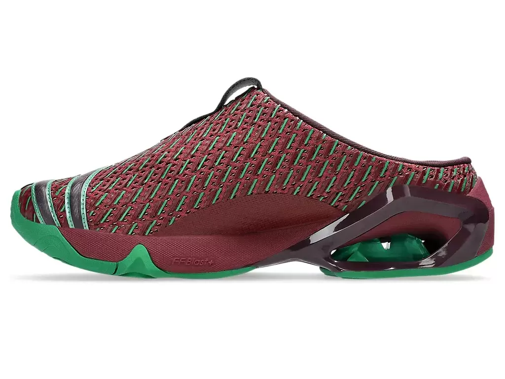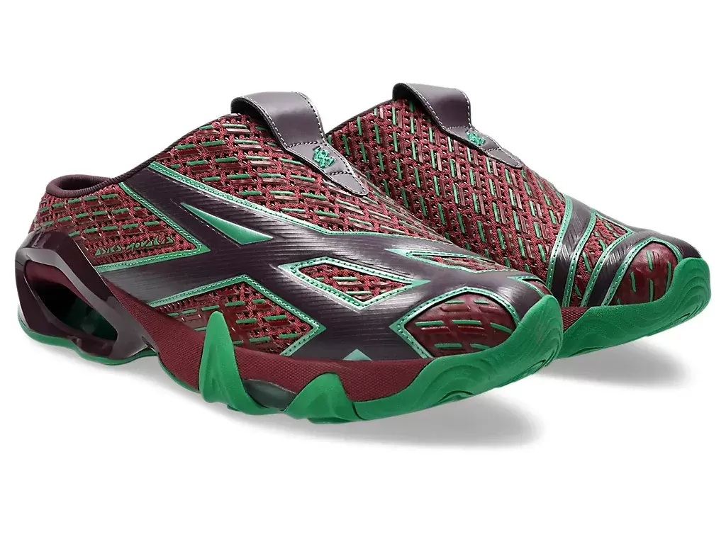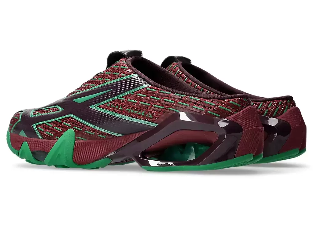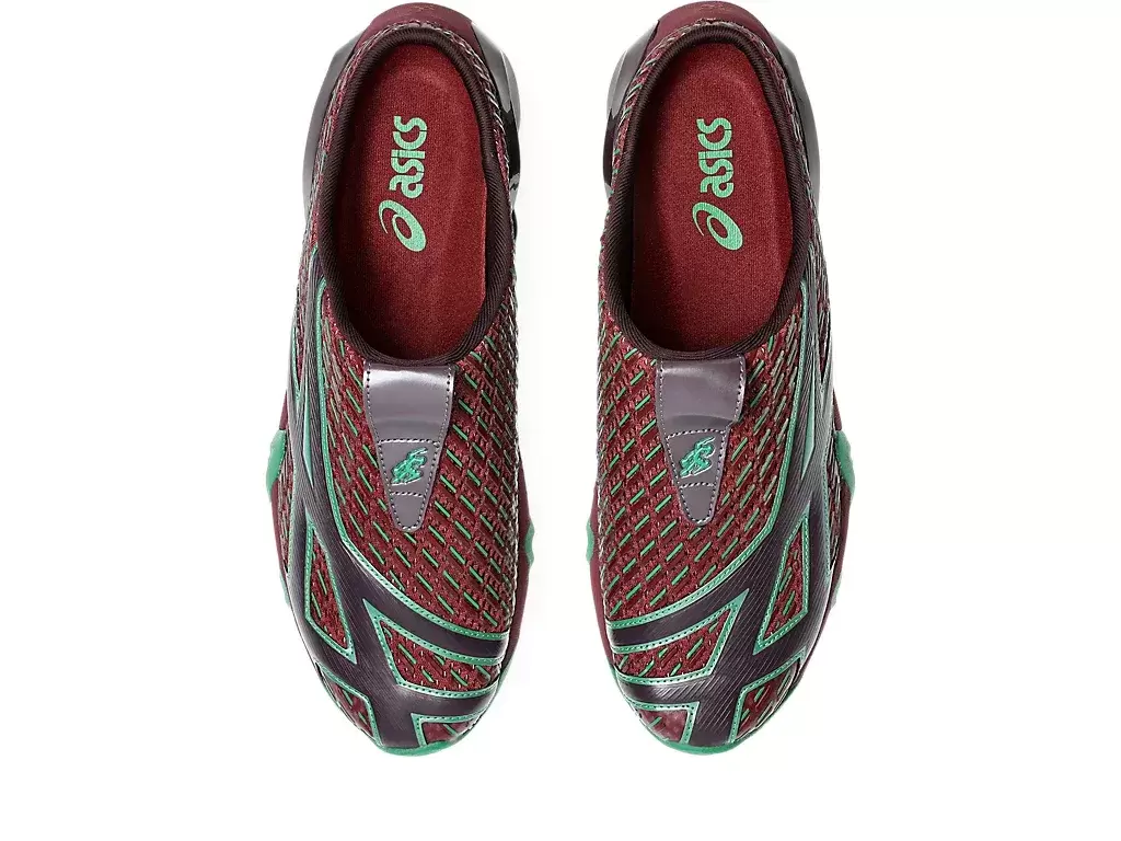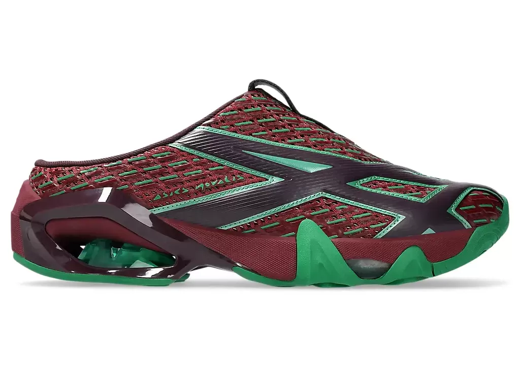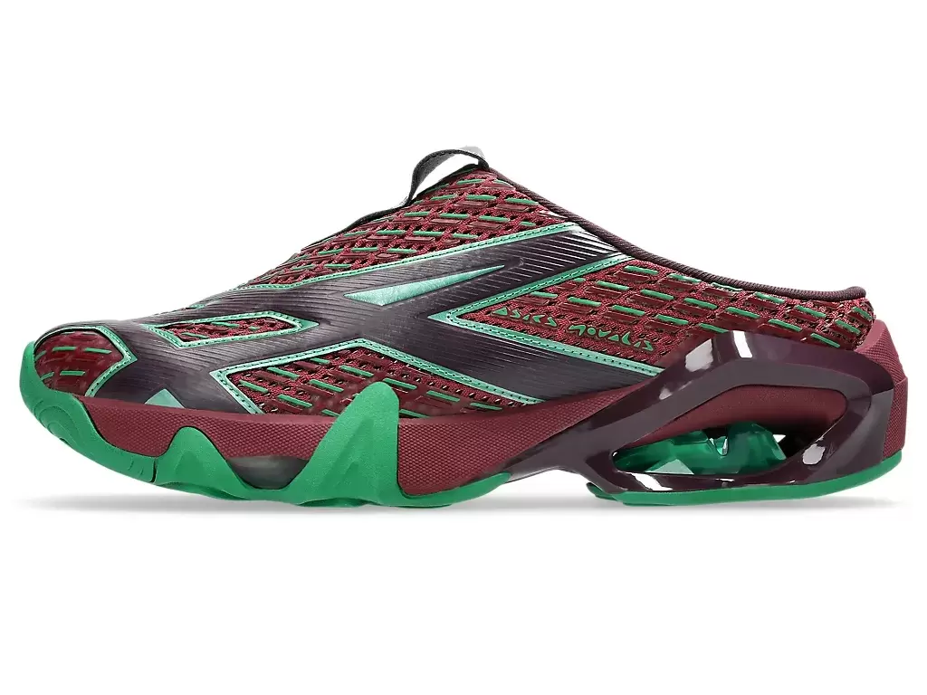 Grafiken der Shirts der TRANSCEND-Serie wurden auf dem Obermaterial des Schuhs neu interpretiert. Die Silhouette ist außerdem mit einer Sabot-ähnlichen Konstruktion gestaltet, um das An- und Ausziehen zu erleichtern.