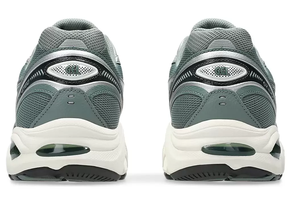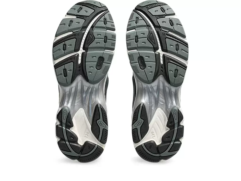 Weitere einflussreiche Details aus den 2010er Jahren sind eine segmentierte Mittelsohlenstruktur und Einsätze mit GEL®-Technologie. Diese Kombination schafft eine industrielle Ästhetik, die mit fortschrittlichen Dämpfungseigenschaften einhergeht.