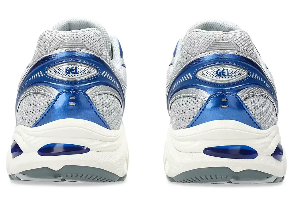 Weitere einflussreiche Details aus den 2010er Jahren sind eine segmentierte Mittelsohlenstruktur und Einsätze mit GEL®-Technologie. Diese Kombination schafft eine industrielle Ästhetik, die mit fortschrittlichen Dämpfungseigenschaften einhergeht.