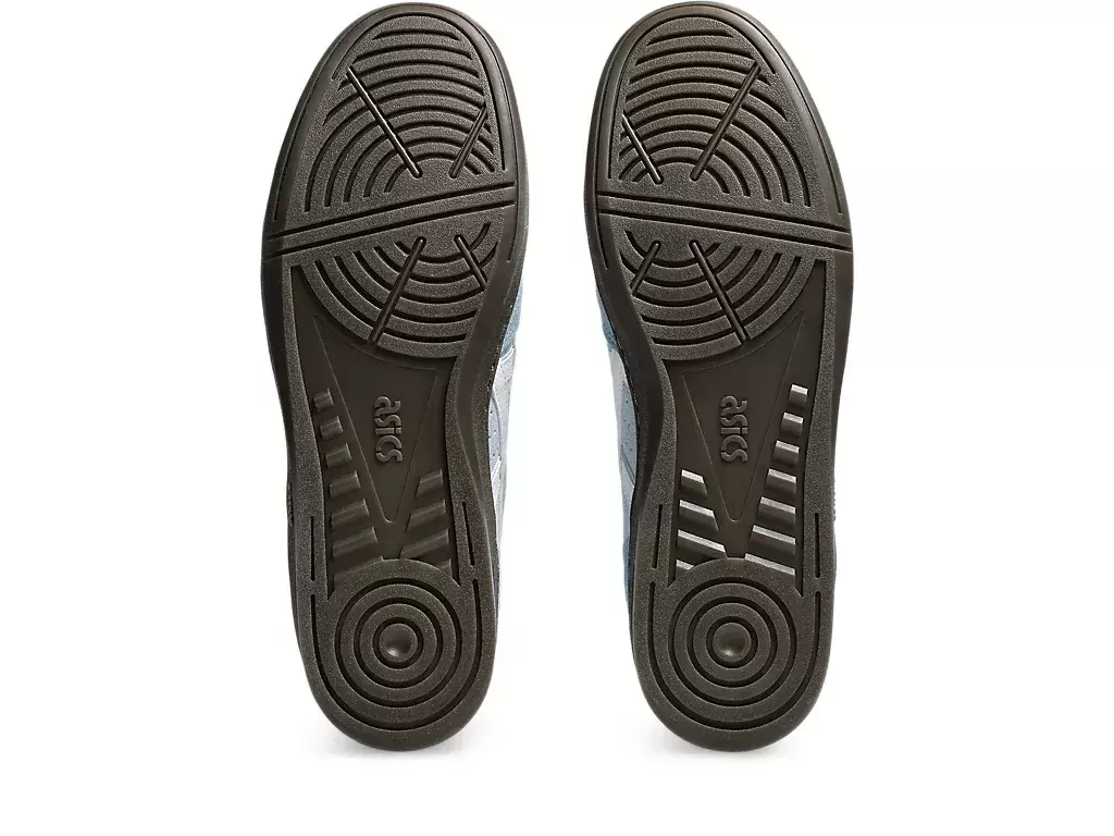 Die aktualisierte Konstruktion des Schuhs verfügt über Wildledereinsätze und Gummilaufsohlen. Der Fersenkeil verfügt außerdem über eine EVA-Dämpfung.