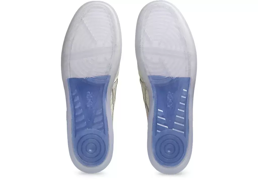Flache Außensohle mit durchsichtigem Gummi und sichtbarem EVA-Fersenkeil