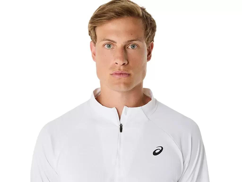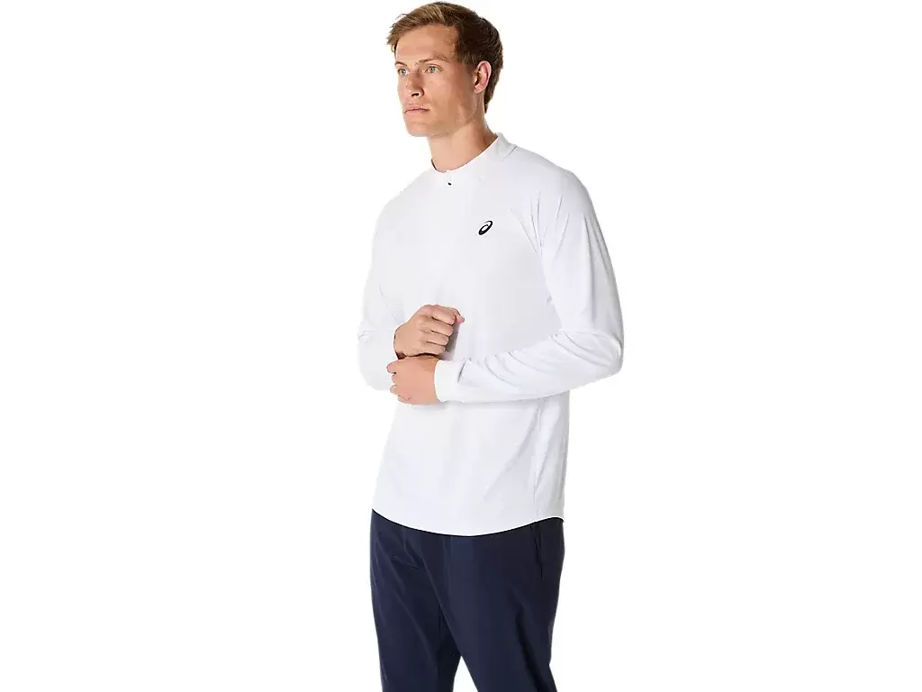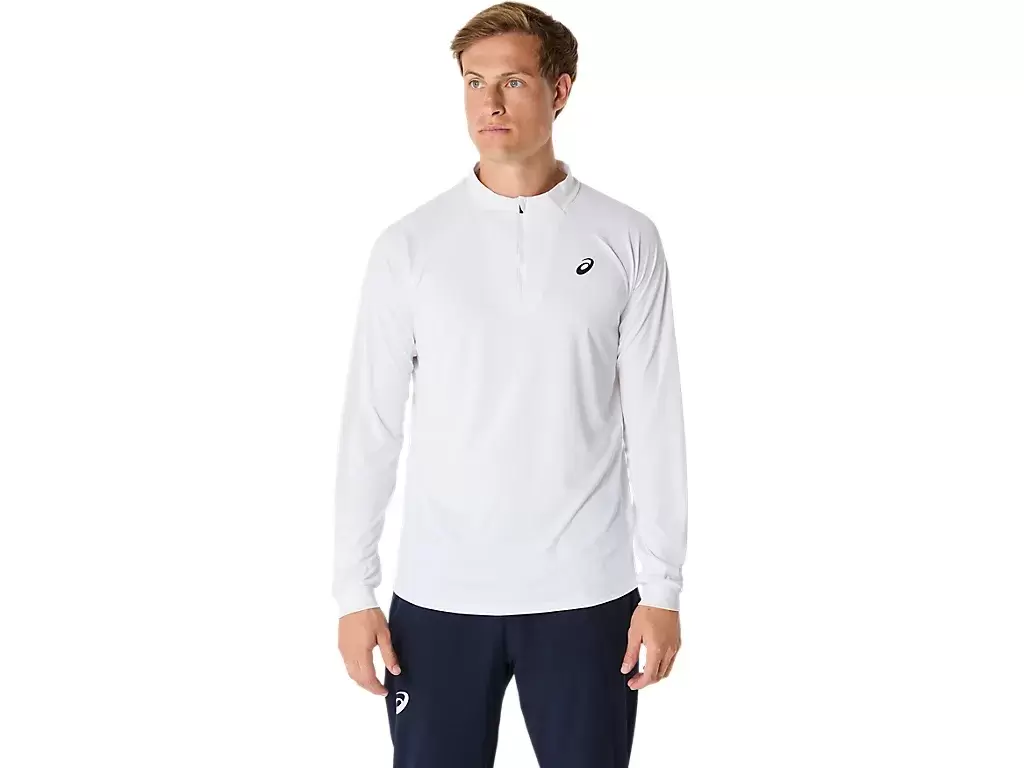 Das MATCH LONG SLEEVE 1/2 ZIP TOP ist ein bequemes Kleidungsstück zum Aufwärmen, Abkühlen und für die Zeit nach dem Spiel.