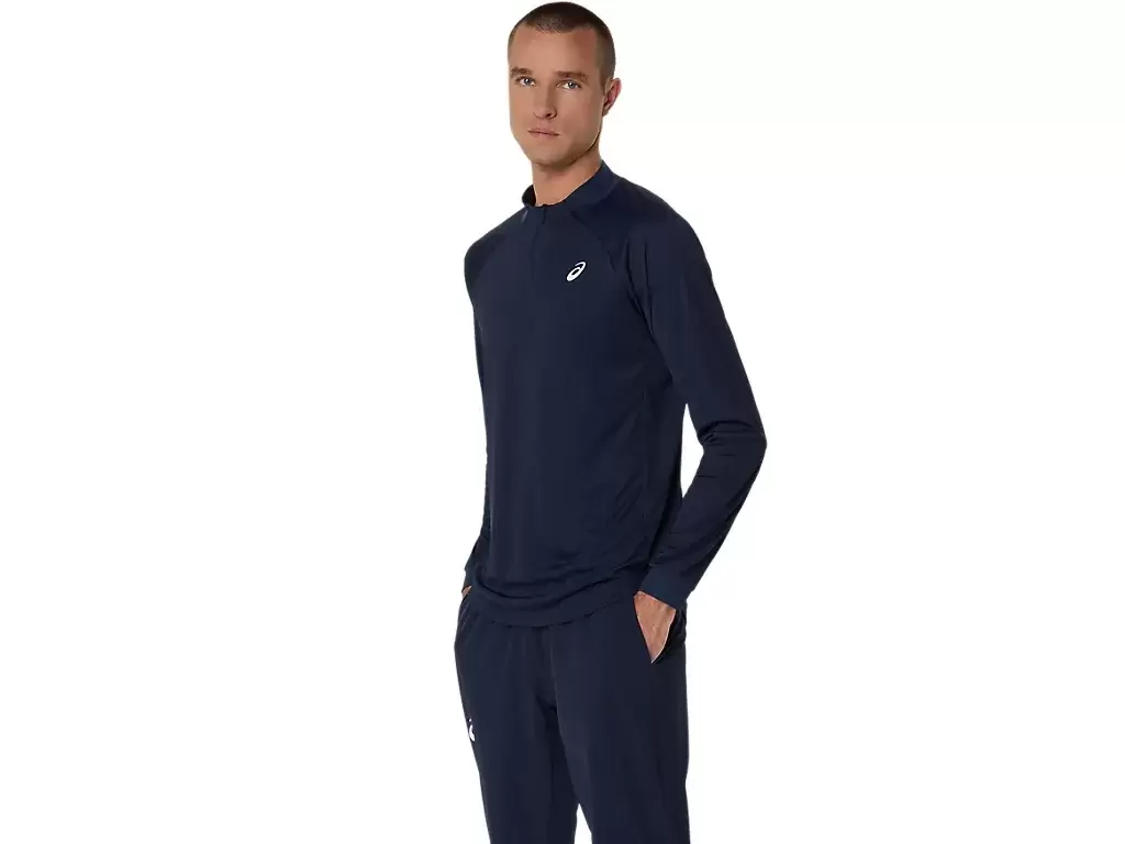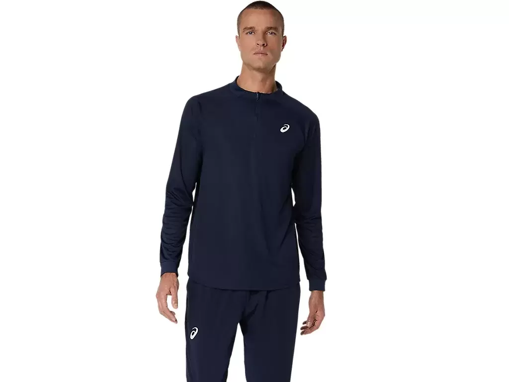Das MATCH LONG SLEEVE 1/2 ZIP TOP ist ein bequemes Kleidungsstück zum Aufwärmen, Abkühlen und für die Zeit nach dem Spiel.