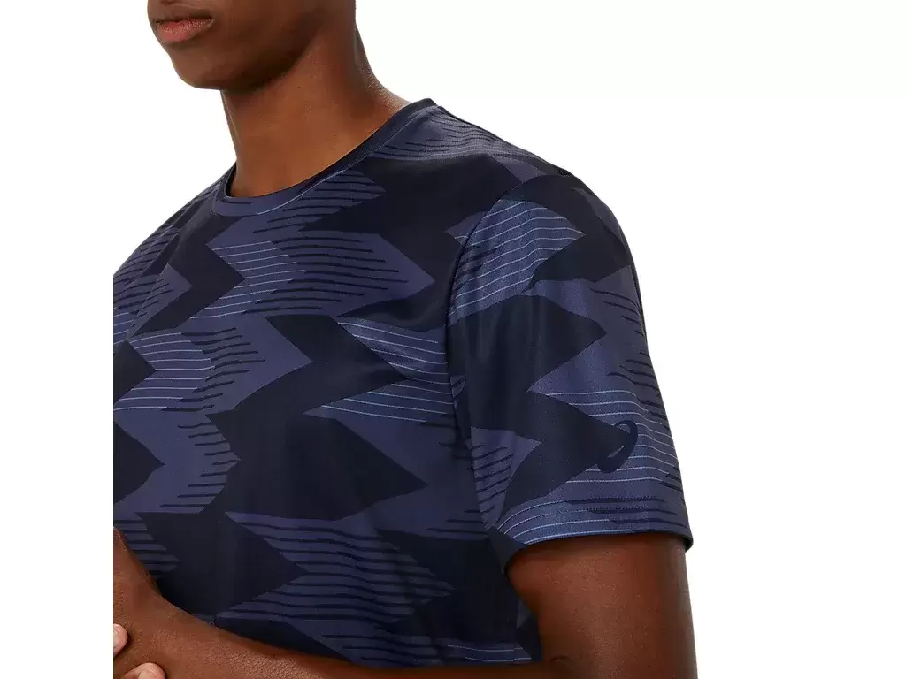 Das Oberteil verfügt außerdem über einen durchgehenden Grafikdruck, der von traditionellen japanischen Mustern inspiriert ist.