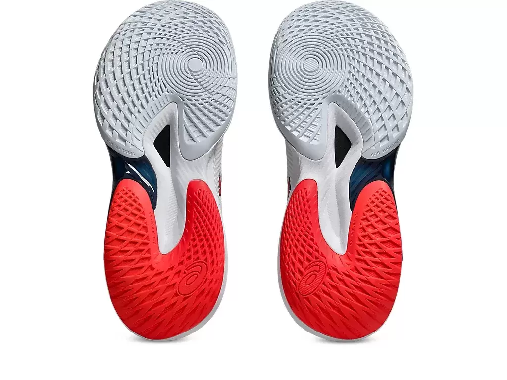 Die Zwischensohle dieses Schuhs verfügt über ein stark gewölbtes Zehendesign und eine mit Carbonfasern verstärkte Kunststoffplatte. Diese Eigenschaften ermöglichen höhere und kraftvollere Sprünge.​