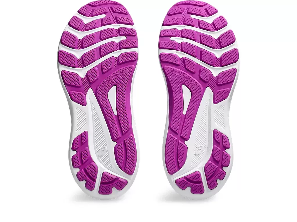 Ein kinderspezifischer Leisten und ein Einlegesohlen-Größenprüfer helfen dabei, sich an wachsende Füße anzupassen. Zusätzlich wurden die mediale Vorfuß-Umhüllungssohle und die Gumminaht an der Zehenpartie für eine verbesserte Haltbarkeit entwickelt.