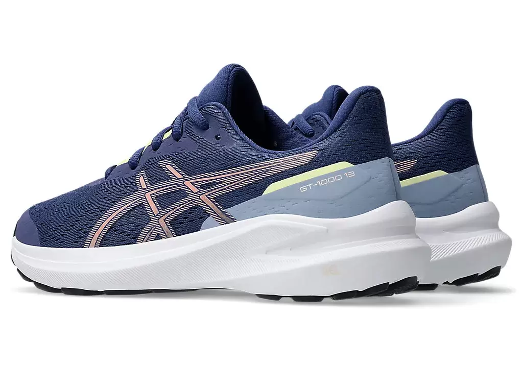 Der GT-1000™ 13 GRADE SCHOOL Schuh ist ein vielseitiger Stabilitätstrainer, der für verschiedene Distanzen geeignet ist. Wir haben die Unterfußdämpfung verbessert, um ein komfortableres und dynamischeres Tragegefühl zu gewährleisten.